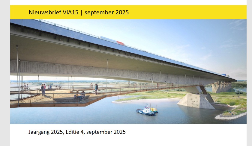 De voorbereidingen voor het project ViA15 zijn begonnen. In de komende zes jaar werken Rijkswaterstaat en aannemerscombinatie GelreGroen aan de doortrekking van de A15 en de verbreding van de A12 en A15. Dat heeft effect op de regio: van De Liemers en de Betuwe tot Nijmegen, de Achterhoek en Arnhem. Daarom organiseren we in oktober drie informatieavonden op 7, 8 en 9 oktober. Lees verder in de NIEUWSBRIEF