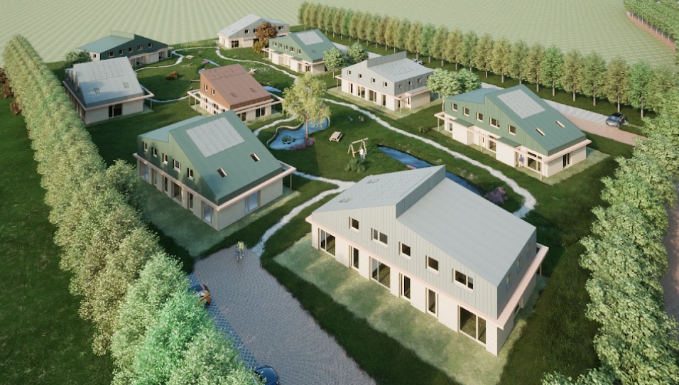 De illustratie boven is een impressie van het project Erve Bosco ontleend aan het betrokken Open Muur Architecten