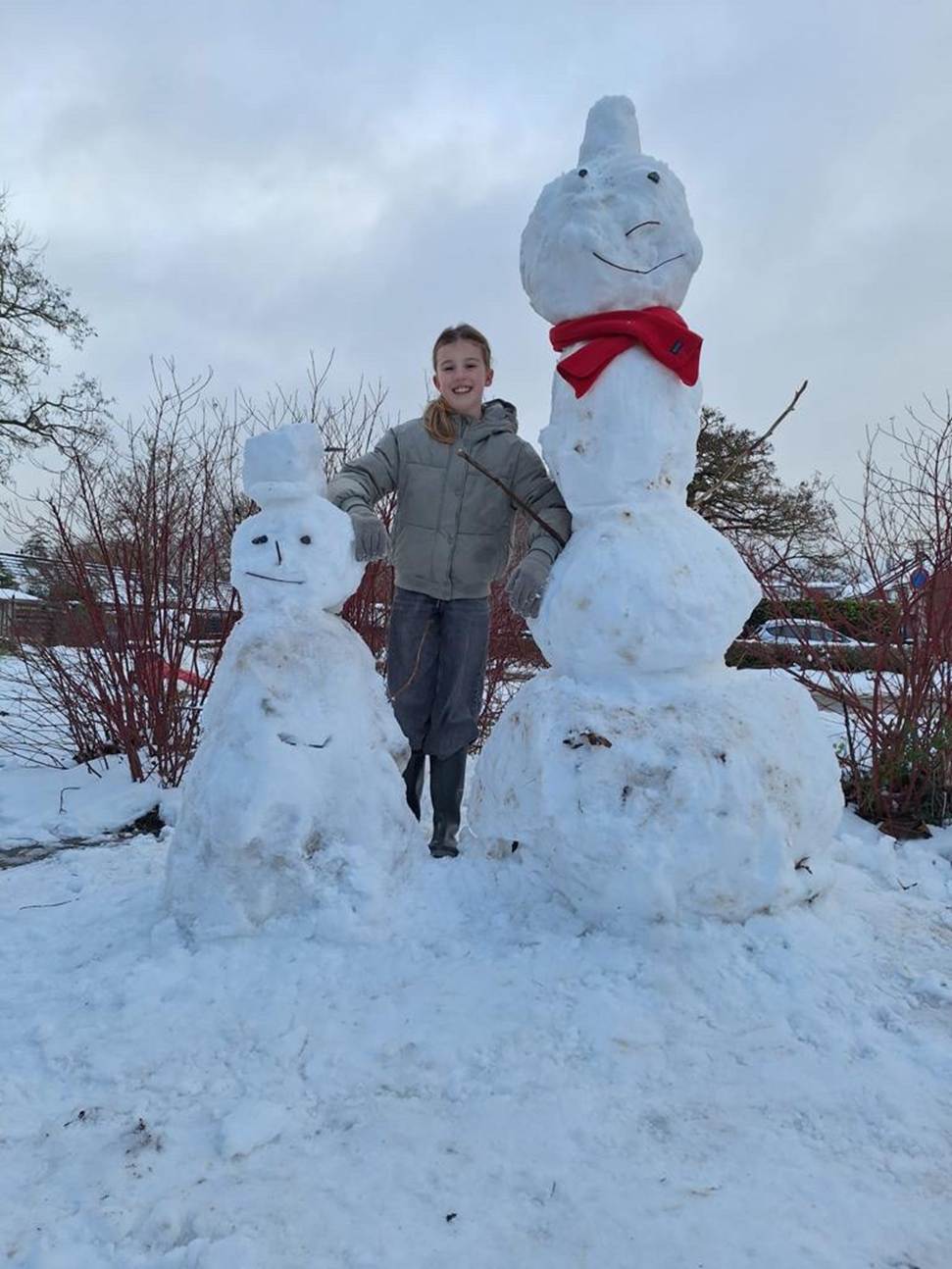 Het was ook heel glad op de wegen dus daarom was het advies om thuis te blijven die woensdag, dus had mijn school De Laarhorst gezegd dat we naar huis mochten. Wij waren natuurlijk blij: sorry juffen. Thuis gingen we eten en met de sneeuw spelen. Mijn hobby is voetballen maar dat is moeilijk in de sneeuw. Ik heb het wel gedaan, maar het is niet zo handig, want ik viel de hele tijd in de sneeuw. Dan word je heel erg nat en dan heb je het koud. Het was vooral lekker om thee of chocolademelk met slagroom te drinken, dan word je lekker warm. ’s Avonds ging ik lekker in mijn stoel zitten en naar het sneeuwen kijken, het leek wel een sneeuwstorm. We zijn de rest van de dagen wel naar school geweest. Op school hadden we een gebied waar je sneeuwballen gevecht kon doen, maar je mocht niet op de hoofden, dat is ook wel logisch. Die ochtend toen ik wakker werd en uit me raam keek, was het helemaal wit, heel mooi. Meteen me jas aangedaan en een mooie sneeuwpop gemaakt.